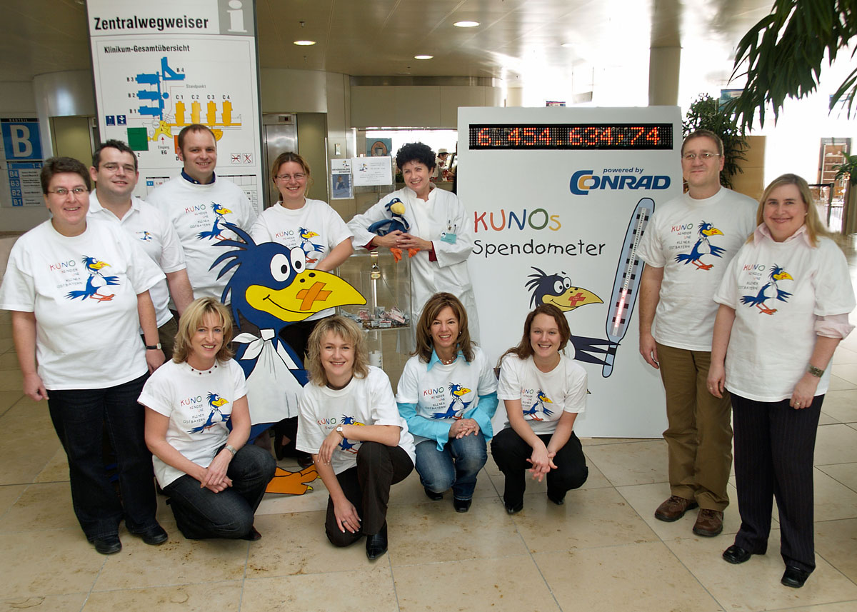 Zur Spendenübergabe brachte Werner Conrad außerdem ein elektronisches KUNO-Spendometer mit, das fortan im Foyer des Uniklinikums stand und auf dem jeder ablesen konnte, wieviel inzwischen für die Kinder-Universitätsklinik für Ostbayern gespendet wurde.