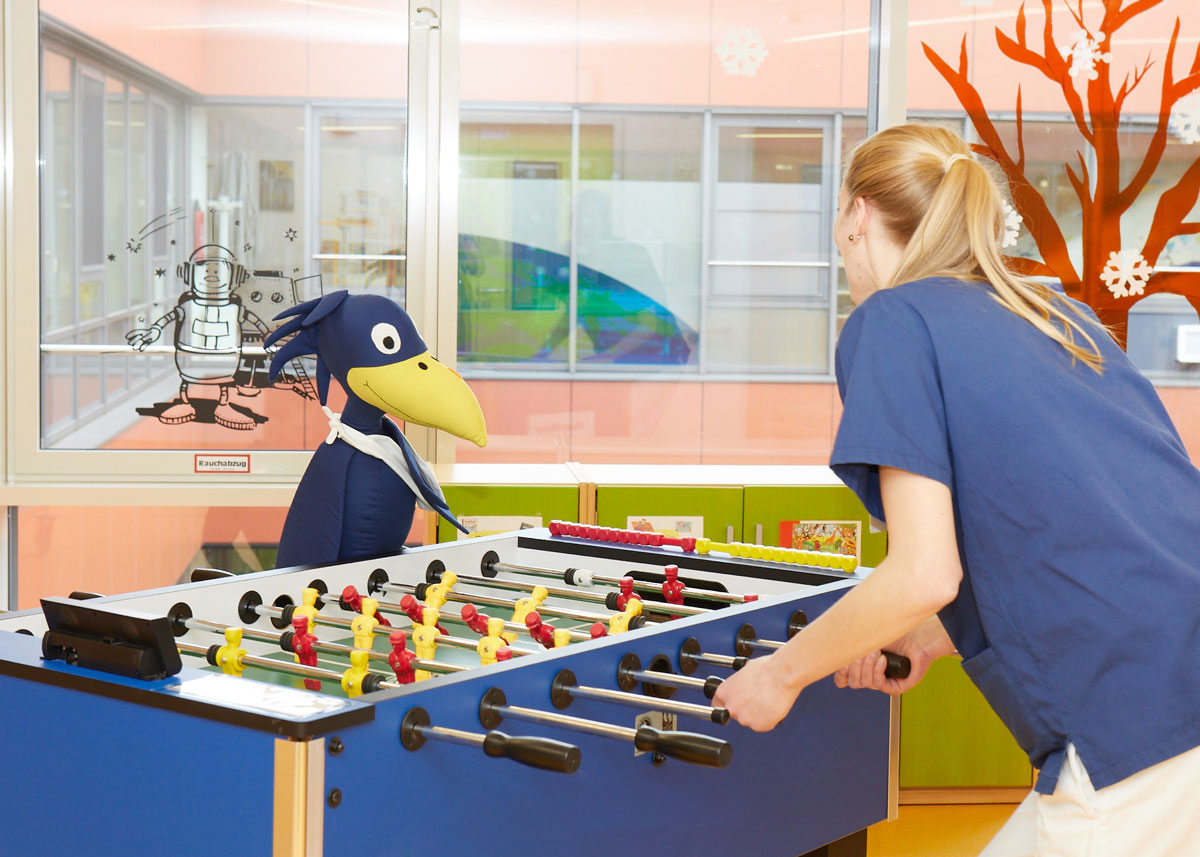 Wir möchten jedoch nicht nur den Alltag der Kinder, sondern auch der Eltern ein Stück weit erleichtern. Da weder die Pflegekräfte im Klinikum noch die Familien die Patienten 24 Stunden am Tag beaufsichtigen können, gibt es in der KUNO-Klinik spezielle Betreuer. Diese können bei Bedarf einspringen, bis die Eltern von Terminen oder Arztgesprächen zurückkehren. Da eine solche Betreuung finanziell leider nicht vorgesehen ist, obwohl sie stark zu einem familiengerechten Umfeld beiträgt, übernimmt die KUNO-Stiftung die Finanzierung der Betreuer.